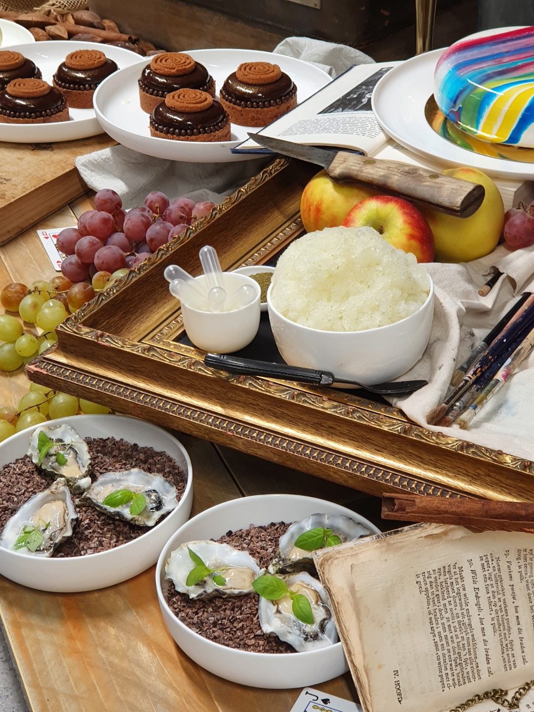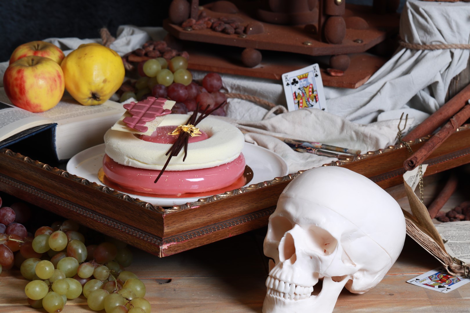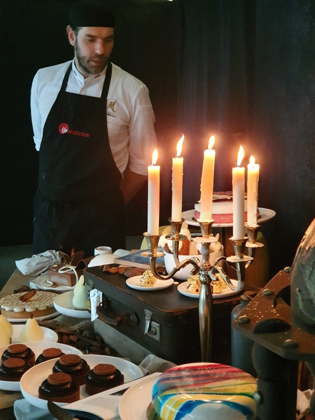 Naast smaakcombinaties en de perfect uitgewerkte ijstaarten en ijshapjes, heeft De Brabander zich compleet gestort op een prachtige setting voor het buffet. De kunstliefhebber voelt zich met name gegrepen door het vanitas-thema, waar Hollandse meesters als Pieter Claesz furore mee maakten. Vanitas is een stijl waarbij de kunstenaar stilstaat bij de vergankelijkheid van het leven. Schedels, bloemen, globes en uitingen van rijkdom worden veelvuldig geportretteerd in deze stijl. “Het buffet is opgesteld als een vanitas stilleven”, toont De Brabander. “Inclusief de schedel! Maar ook de uit chocolade getrokken wereldbol als showstuk van de tafel. Vanitas gaat over de dood en de tijd. Vergankelijkheid is onderdeel van het leven. We zijn hier allemaal tijdelijk. Maar wat laat je achter? Dat is een vraag die me bezighoudt: Hoe herinneren mensen jou? Dat vind ik voor mezelf ook belangrijk. We maken als ijsbereiders en patissiers eetbare producten: die zijn vergankelijk. Maar wat kun je als ambachtsman betekenen? Misschien een verandering in de branche? De meestertitel zie ik als onderdeel daarvan.”